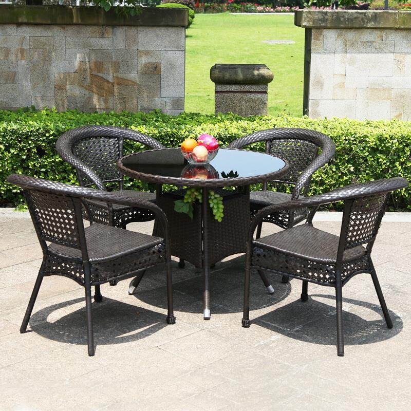 Outdoor Table And Chair Balcony Table And Chair Outdoor Leisure Rattan Chair Tea Table Garden Table And Chair Combination Three Or Five Pieces Of Outdoor Furniture 4 Widened Rattan Chair + 90cm Rattan Round Table