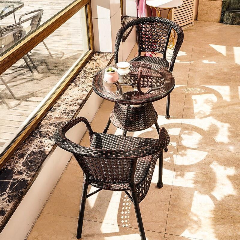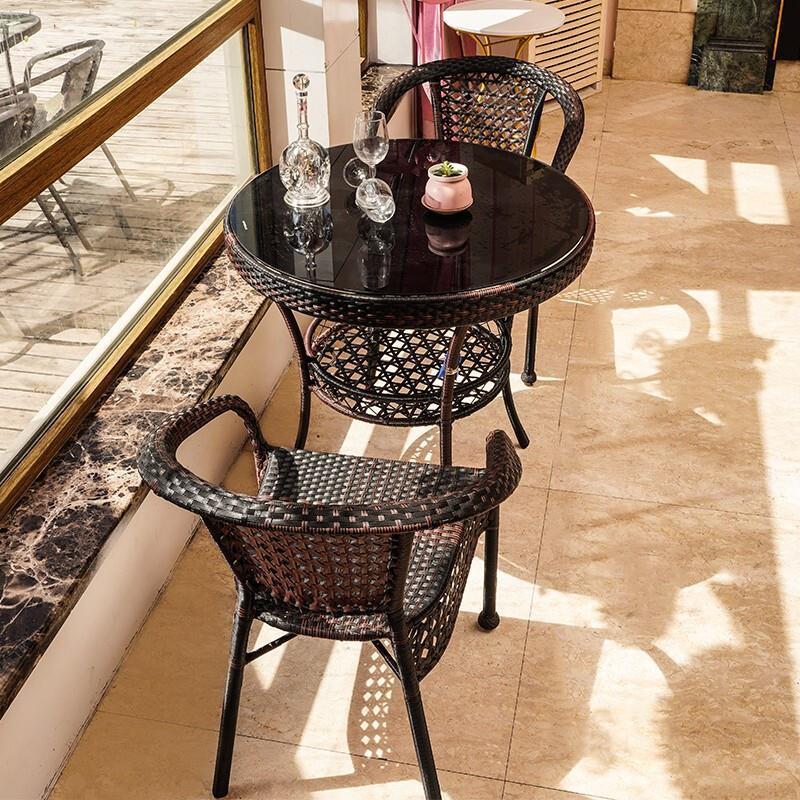 Balcony Table And Chair Small Tea Table Rattan Chair Leisure Tea Table Courtyard Rattan Chair 60 Wide Edge Round Table + Two Chairs