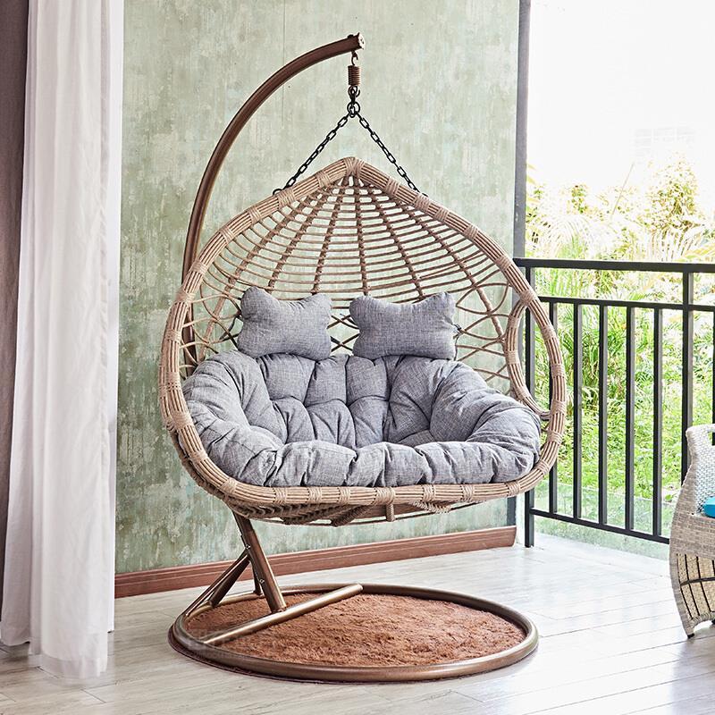 Double Basket Rattan Chair Hanging Chair Household Hammock Indoor Bird's Nest Balcony Swing Courtyard Outdoor Net Red Cradle Chair Double Single Pole