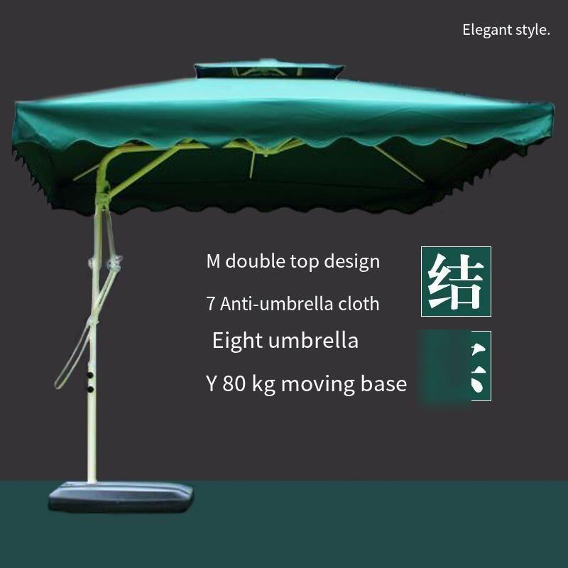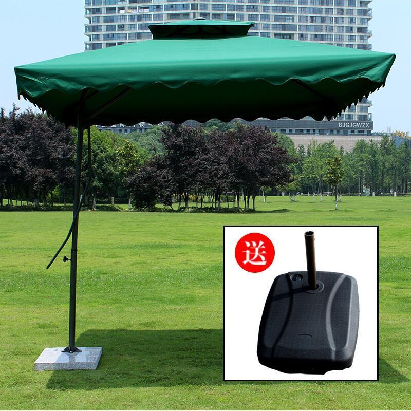 Double Top Umbrella Square Outdoor Sunshade Anti Big Sun Wrench Square Courtyard Sentry Box 4 Bone 2.2m Dark Green + Water Tank Bottom