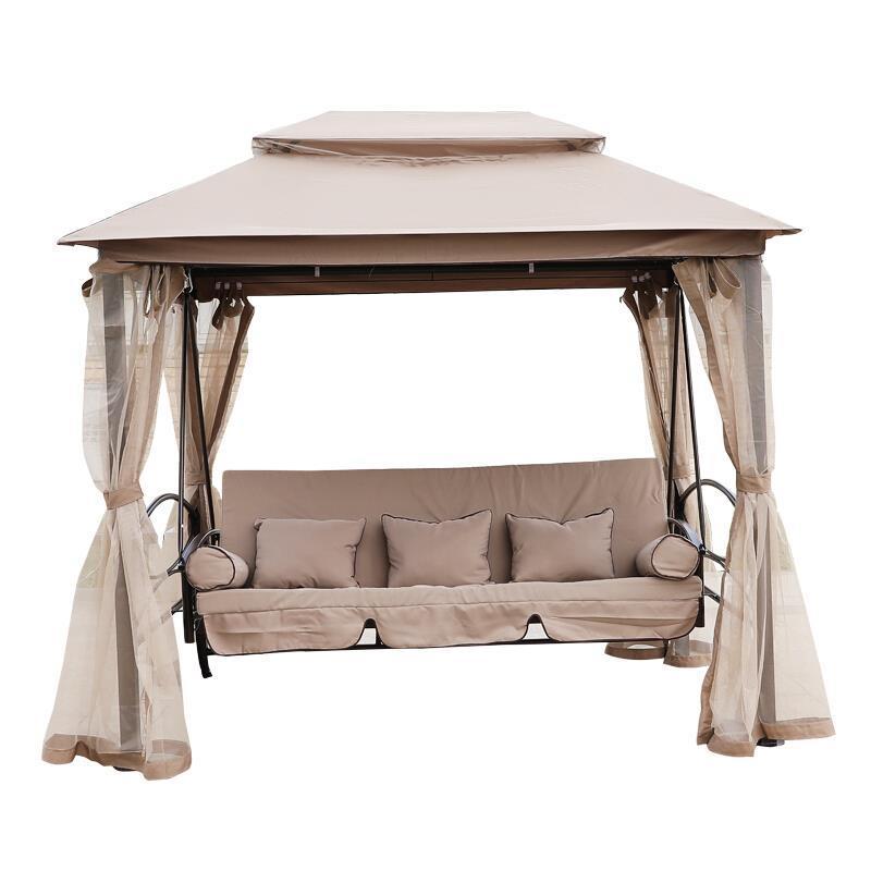 Garden Rocking Chair Iron Double Balcony Swing Courtyard Outdoor Roman Swing Hammock Upgrade Top Reinforced Tent 2 Round Pillows 3 Throw Pillows