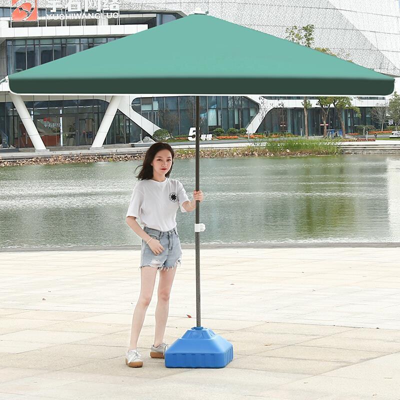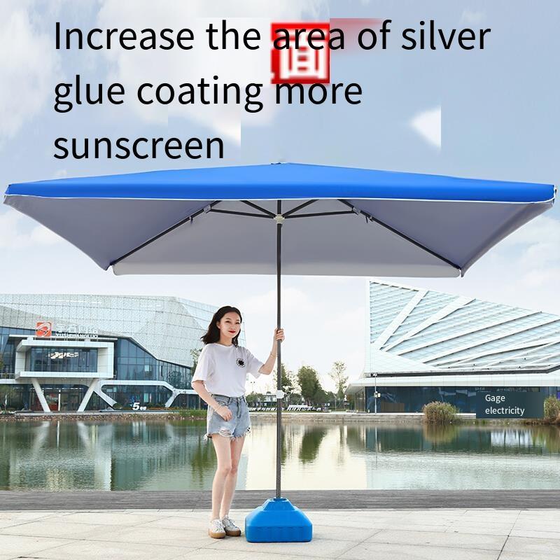 Large Sun Umbrella Commercial Courtyard Umbrella Outdoor Large Stall Umbrella Square Rectangular Umbrella Folded Red 1.8 * 2.2 M (With Base)