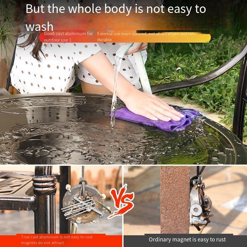 Outdoor Cast Aluminum Table And Chair Courtyard Outdoor European Balcony Villa Courtyard Outdoor Furniture [diameter 80cm] + 4 Chairs
