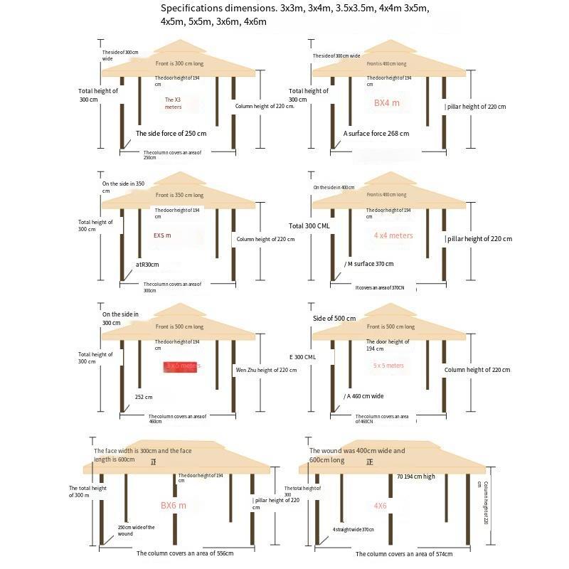 Outdoor Large Sunshade Tent Four Foot Pavilion Villa Courtyard Large Roman Tent Umbrella 3 * 3m + Gauze Curtain + Wai Cloth