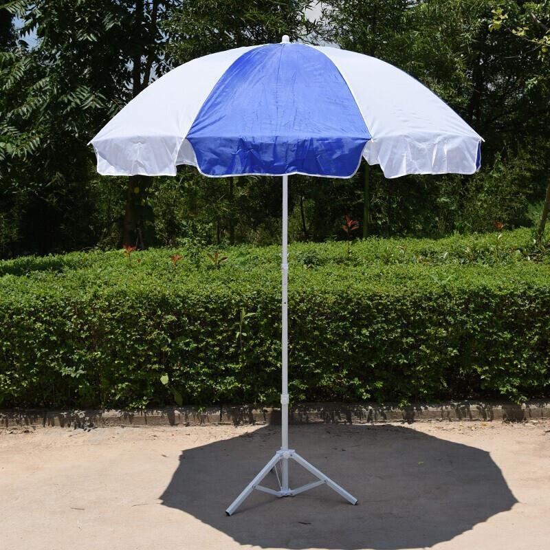 Outdoor Sun Umbrella Courtyard Sunshade Beach Fishing Thickened Large Folded 2m Silver Glue Blue Umbrella + Triangular Base