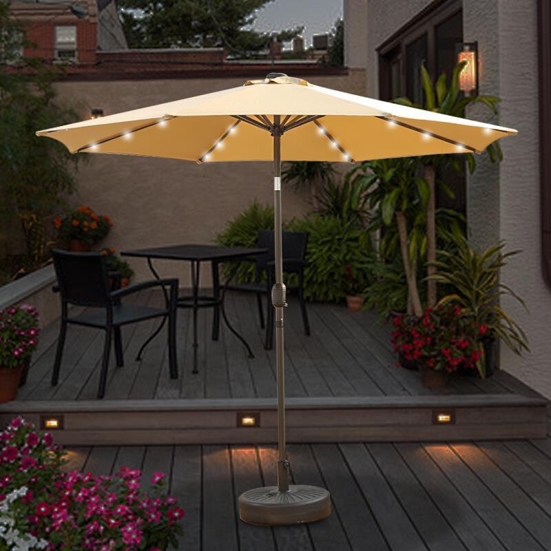 Outdoor Sunshade Umbrella Terrace Garden Solar Lamp Stall Large Sun Courtyard Iron Straight Rod Single Top Khaki + Water Seat