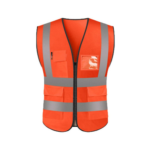 Reflective Vest Zipper Multi Pocket Reflective Vest Fluorescent Orange Car Traffic Safety Warning Vest Reflective Strips Environmental Sanitation Construction Duty Riding Safety Suit