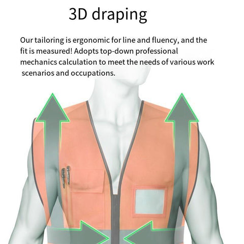 The safety vest with human body engineering 3D three-dimensional cutting techniques, the lines and smoothness of the accord with human body engineering, using top-down professional meet the demands of all kinds of work scene and mechanical calculation