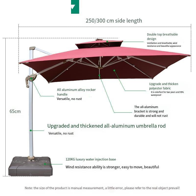 Outdoor Umbrella Balcony Leisure Rooftop Garden Umbrella Windproof Stall Aluminum Alloy Roman Umbrella Sunshade Square 3m Stone Seat
