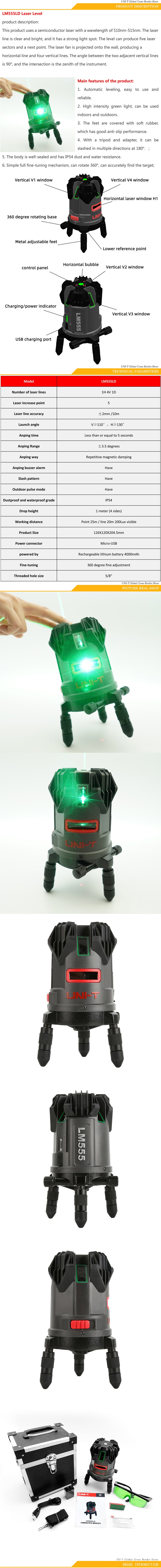 UNI-T 5 Lines Laser Leveler Automatic Level Laser Level High Intensity Green Light IP54 Waterproof Anti-dust Five Laser Sectors LM555LD
